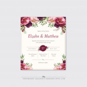 A picture paints a thousand words. A wedding invitation is the picture of your wedding day and a new beginning. At Lezanne’s Designs, it is our desire and commitment to achieve this through client liaison, innovative designs, and inspirational ideas.